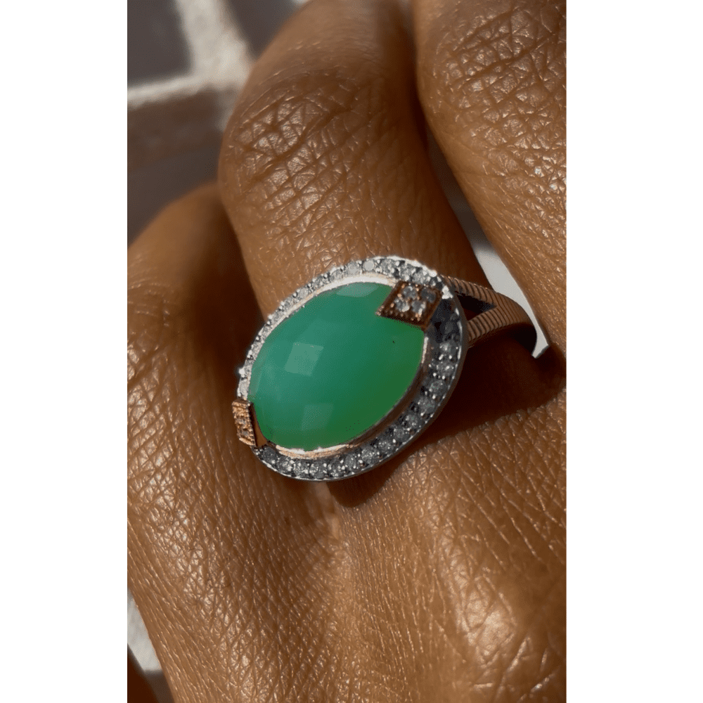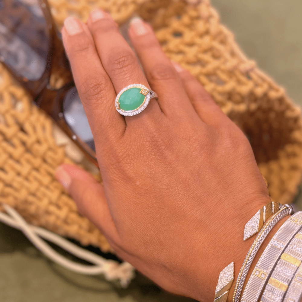 More questions about Lisse Mixed Metal Chrysoprase Cocktail Ring? Send us a message, we are happy to assist you in any way.