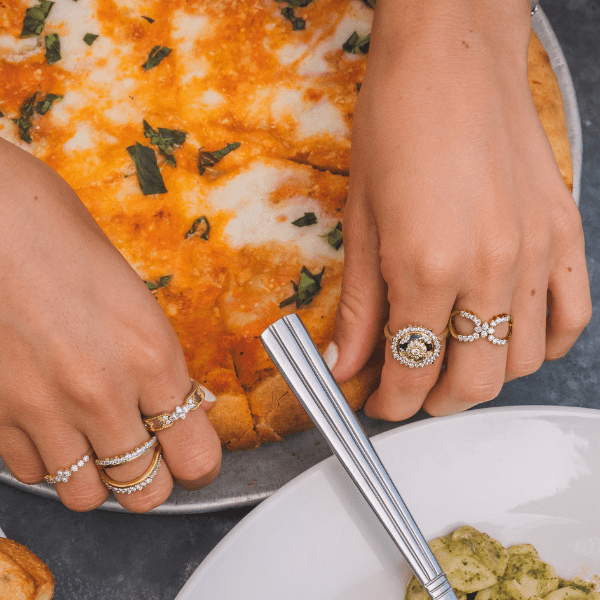 From the Capri Collection, The Sorrento Crown Diamond Ring features 19 Lab Grown Diamonds in a crown shape with a brushed gold edge. This pointer finger ring is a statement ring, elements have gold trim with the signature JFJ brushed finish. Lab Grown Diamonds set in 14K Gold and Sterling Silver. Online Exclusive.