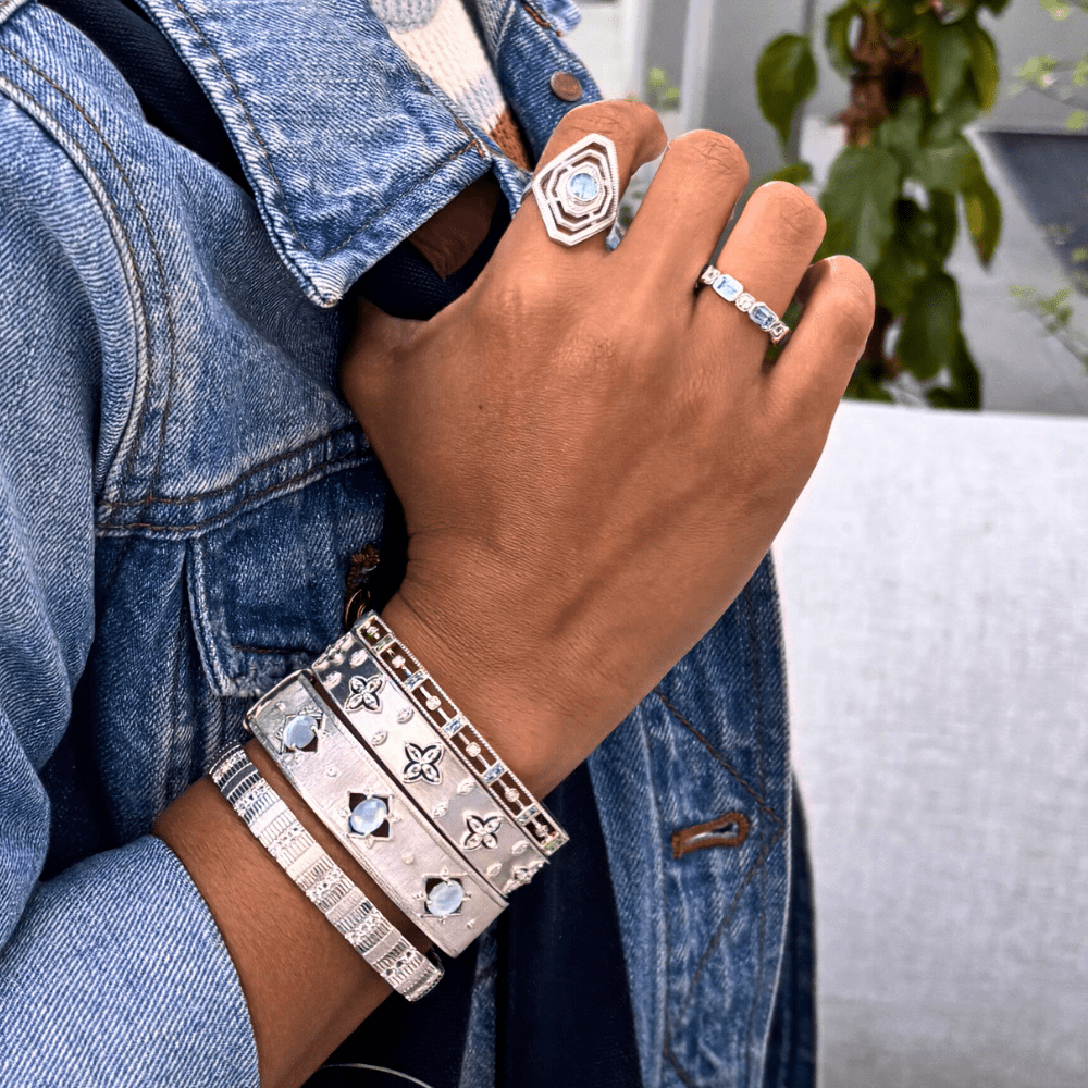 JudeFrances Silver Continuous Kite And Quad White Topaz Bangle