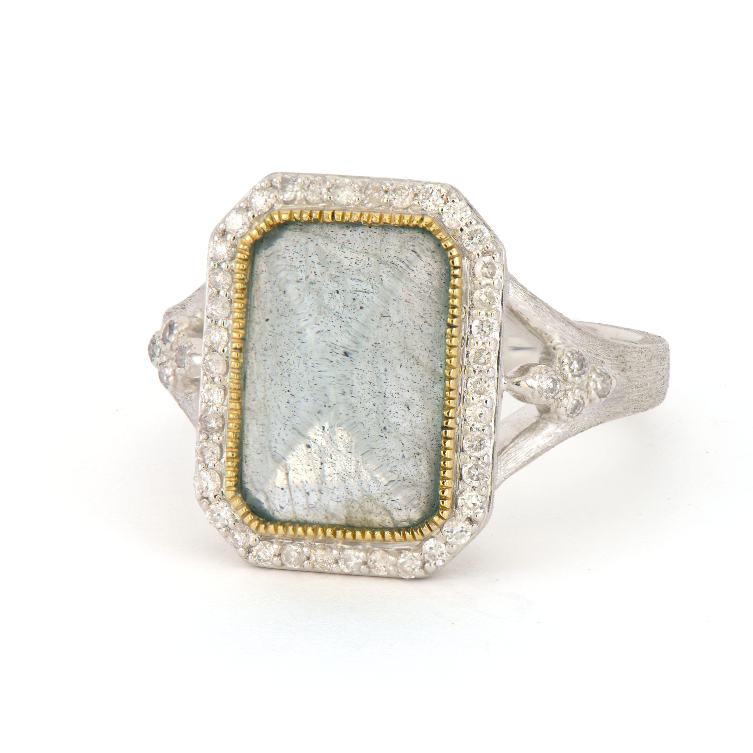 Mixed Metal Oval Stone Pave Halo Beaded Ring