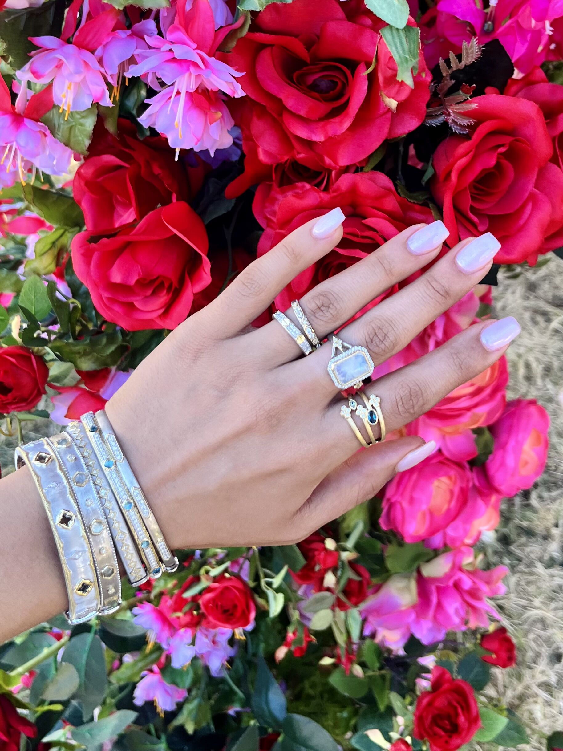 All JudeFrances bangles and cuffs come in a standard size 6.5. They can be special ordered in the sizes below, prices may vary.