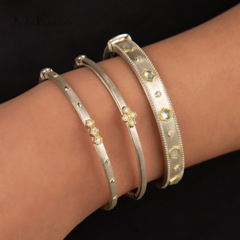 More questions about Mixed Metal Provence Hexagon Gemstone Bangle? Send us a message, we are happy to assist you in any way.