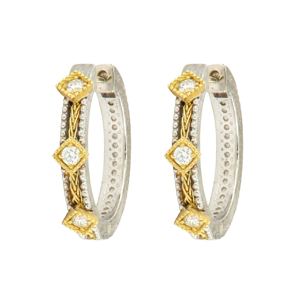 Mixed Metal Woven Rope and Kite Diamonds Hoop Earrings