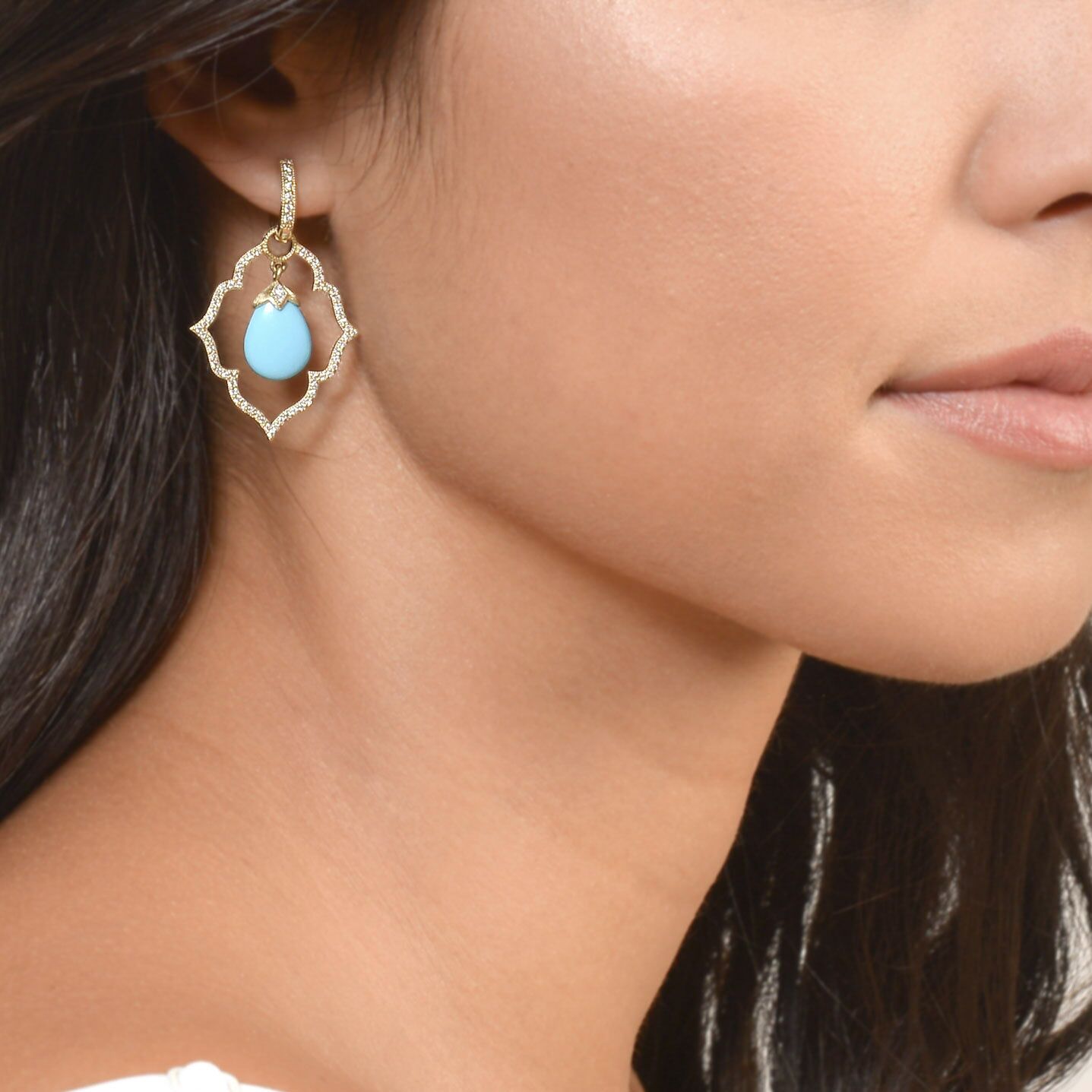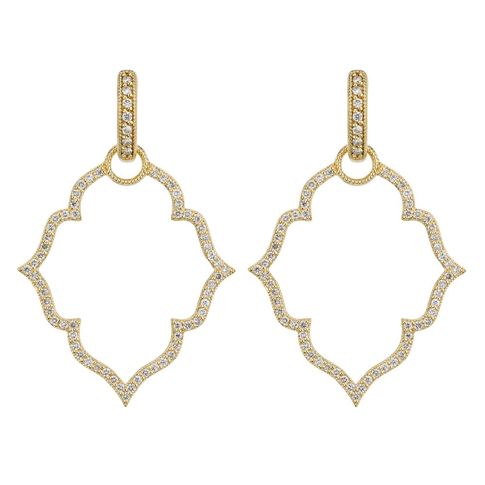From the Moroccan Collection, the Michelle Flower Pave Earring Charm Frames feature 18K gold with French pave set diamonds. Wear Earring Charms Frames alone or along with any number of JudeFrances Hoops and Earring Charms. Hoops and earring charm frames sold separately.