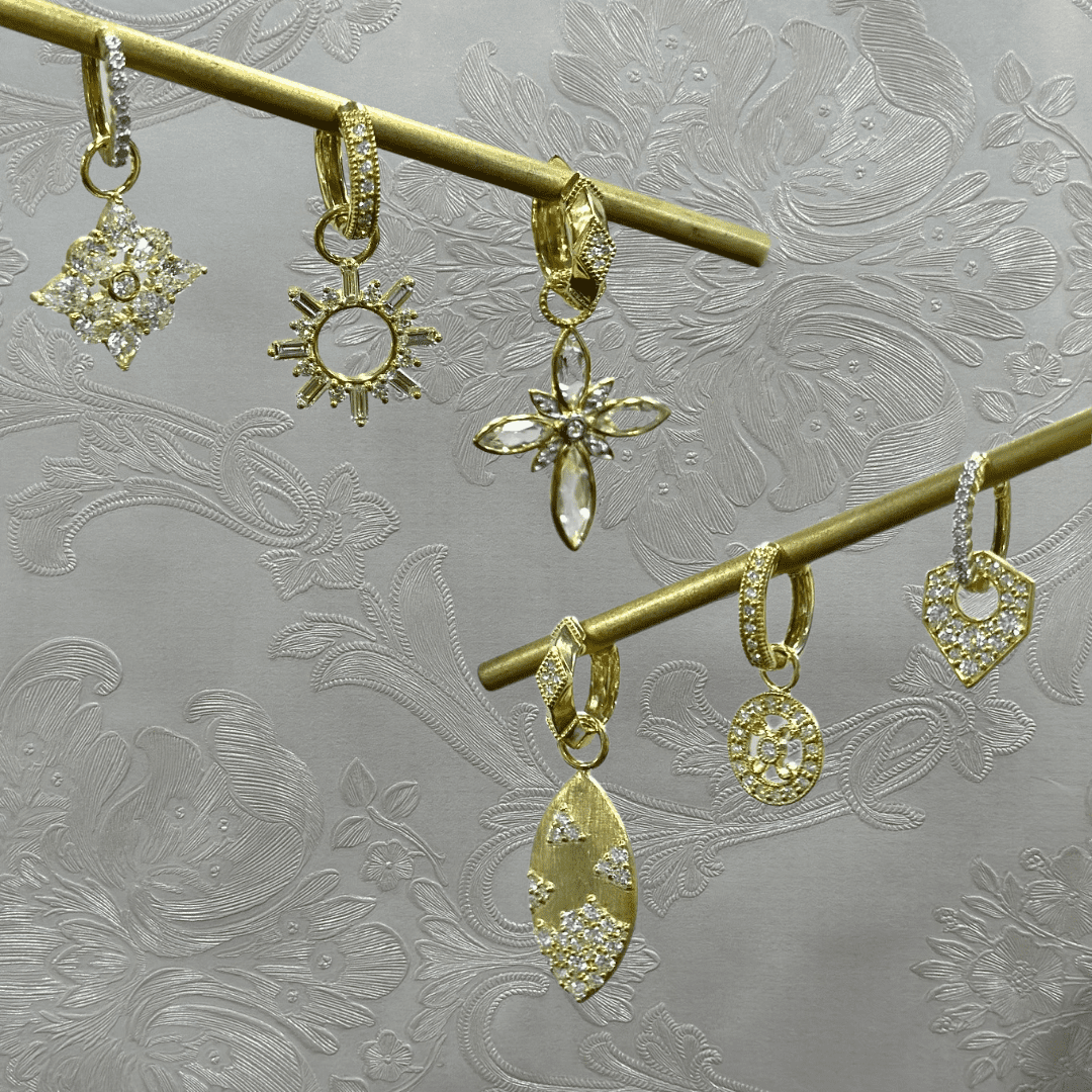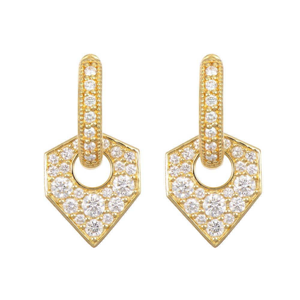 From the Moroccan Collection, the Moroccan Diamond Shield Mini Earring Charms feature round white diamonds on an 18k gold shield frame. Pair this charm with the signature JudeFrances Diamond Huggie Hoop earrings for the best combo. Hoops sold separately.