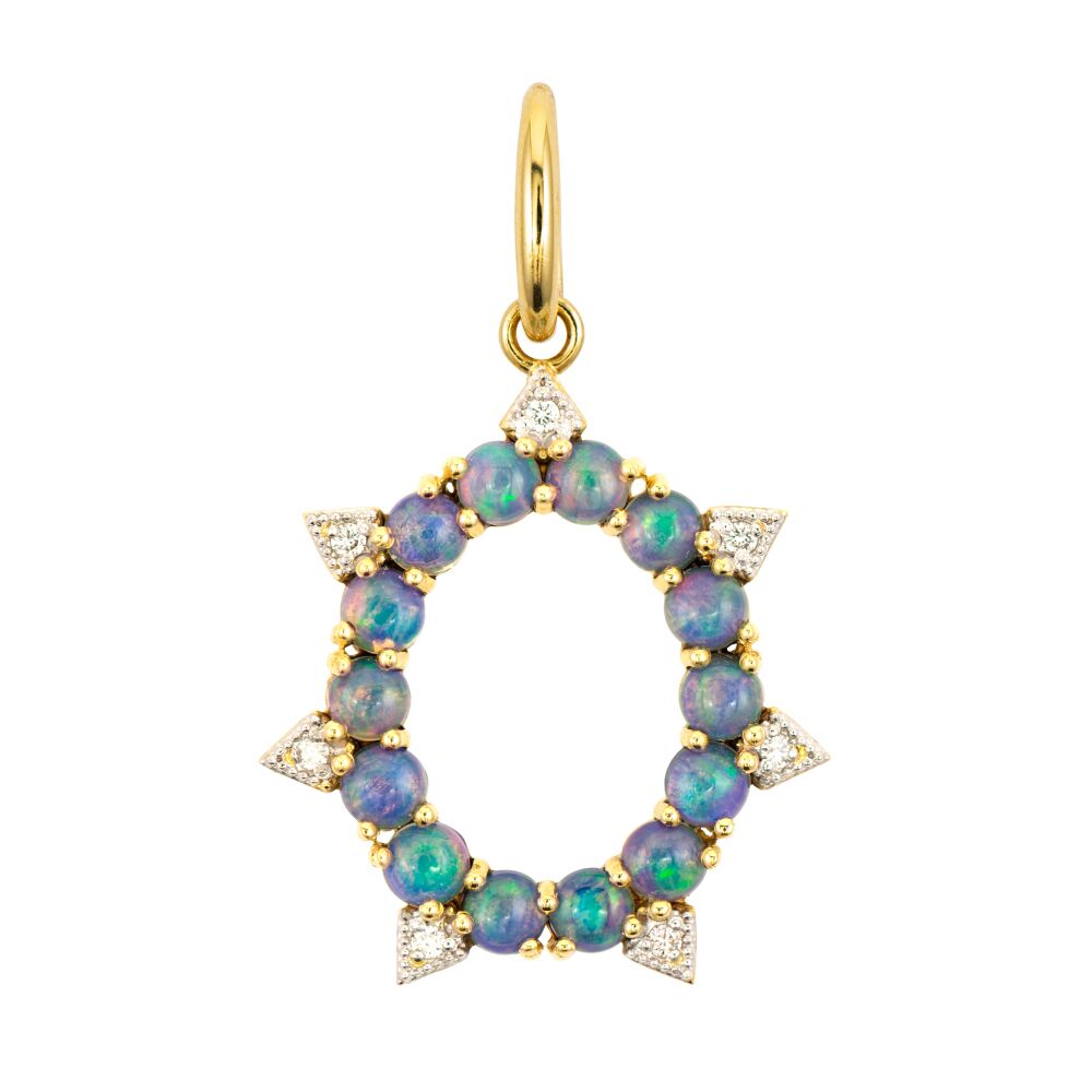 From the Moroccan Collection, the Moroccan Open Opal Pendant features a cabochon opal stone with white diamonds set in a triangle-shaped element on the outer edge. Chain is sold separately.