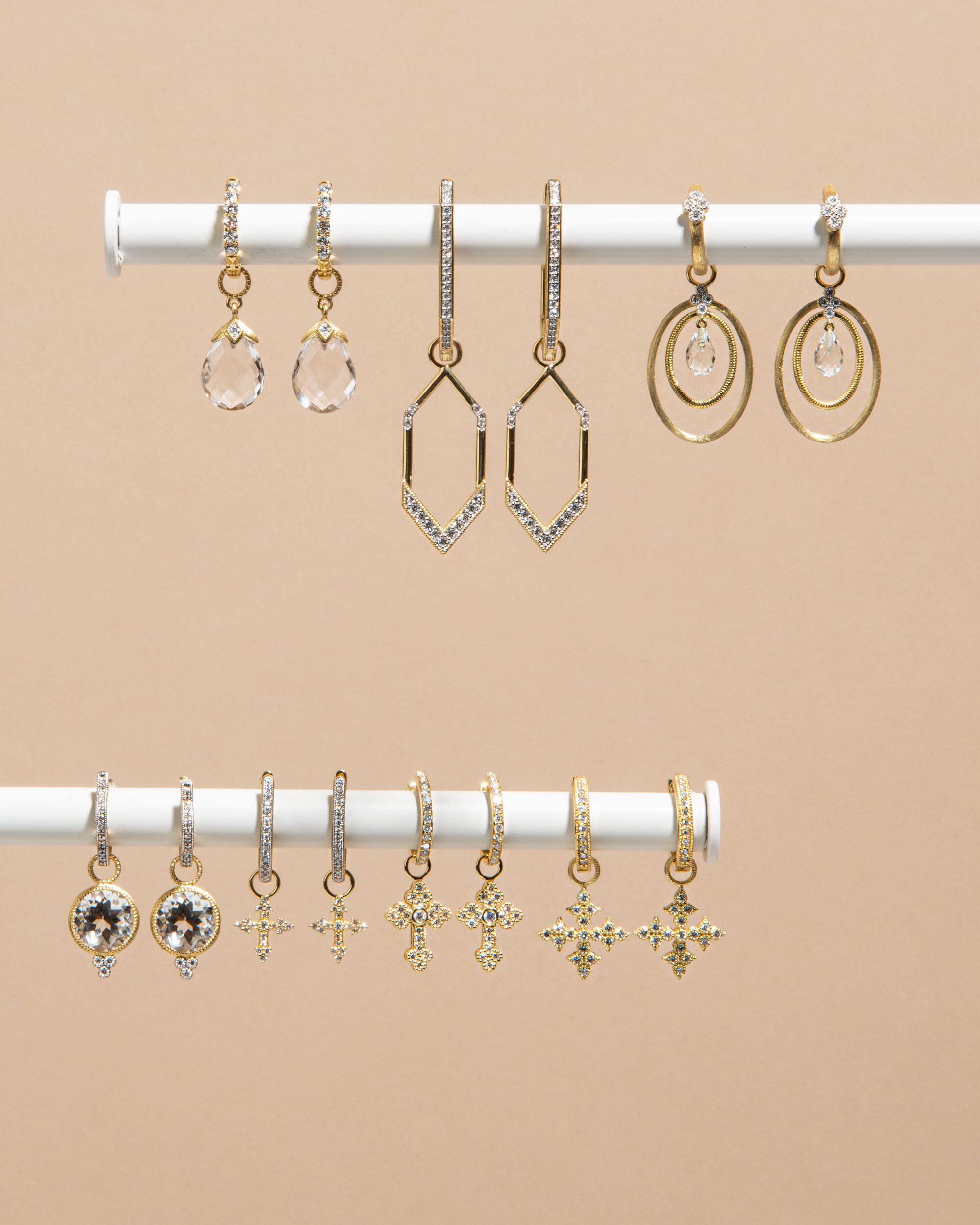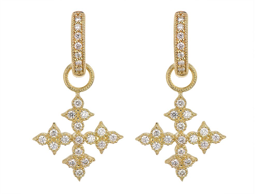 From the Moroccan Collection, the Moroccan Quad Maltese Cross Earring Charms feature bezel set round diamonds in 18K gold with a beaded edge. Hoops and earring charms sold separately.