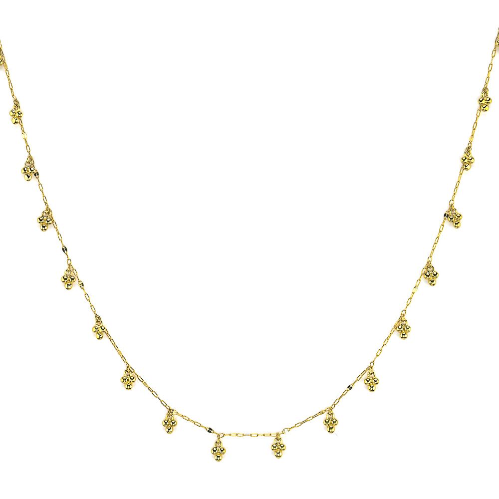 From the Petites Collection, the Petite Dancing Trio Chain Necklace features dangling 18K gold trios on a delicate link chain, with a sliding adjustable closure with 18K yellow gold ball on the ends.
