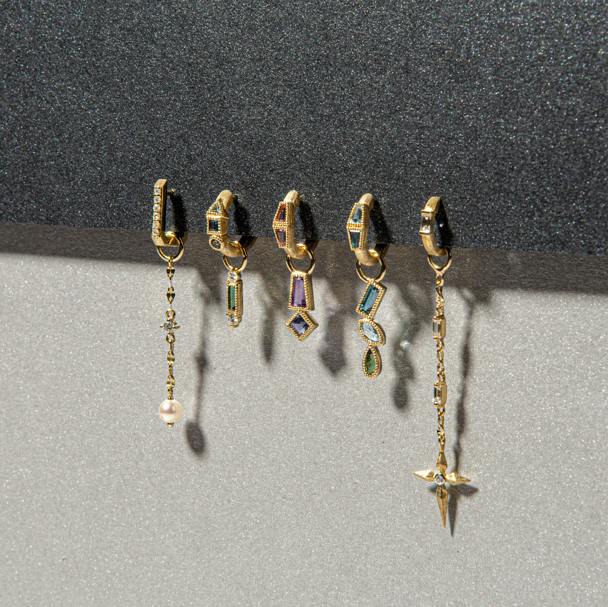 From the Petites Collection, the Petite Dangling Cross Earring Charm features an 18k yellow gold chain set with two white diamond baguettes leading to a cross with a white diamond in the center that dangles at the end of the charm. Hoops and earring charm sold separately. Charms sold as singles.