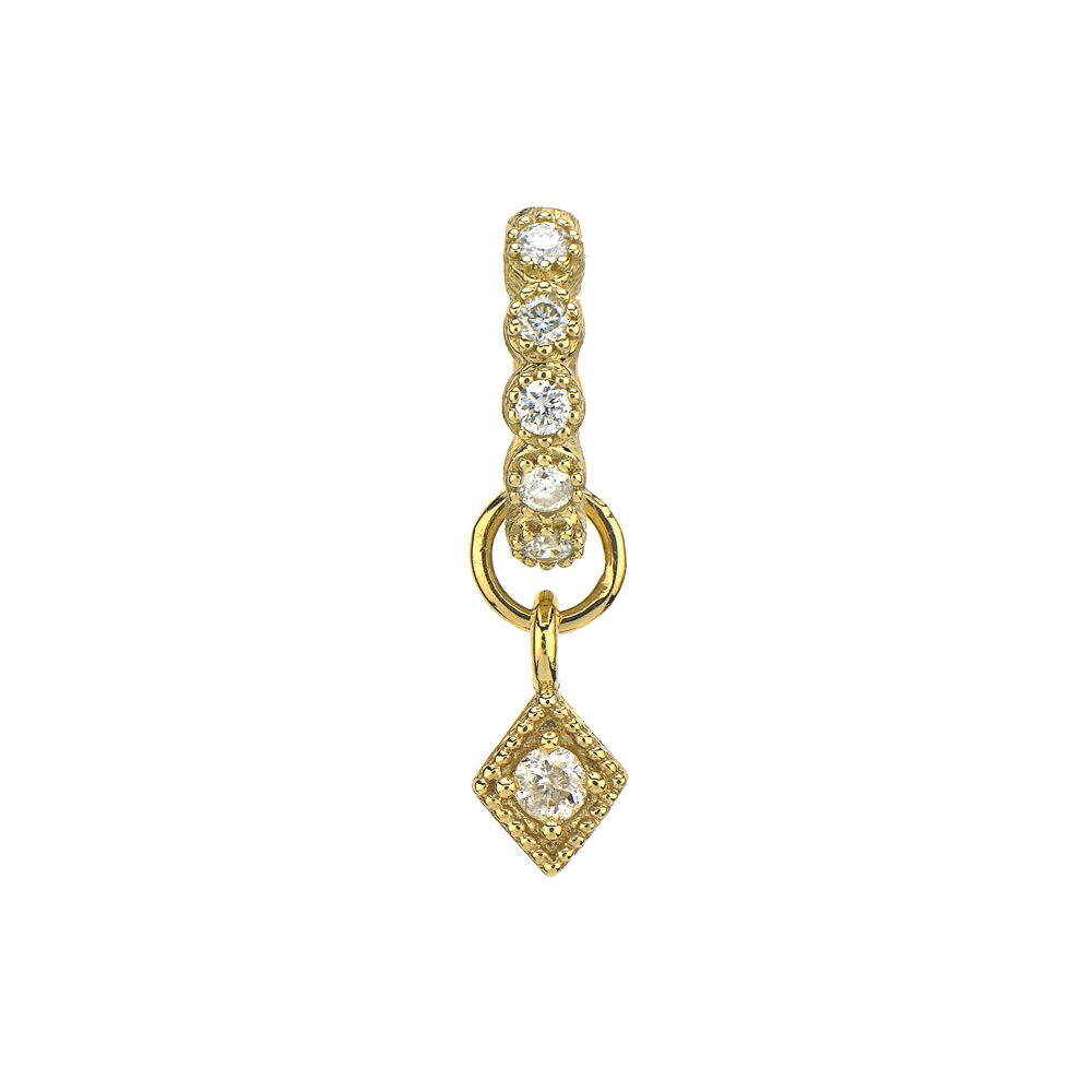 From the Petites Collection, the Petite Diamond Kite Earring Charm features a kite white diamond set in 18K gold. Hoops and earring charms sold separately. Charms sold as singles.
