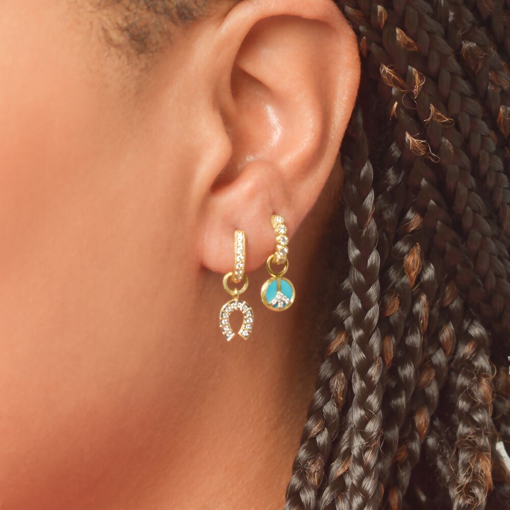 From the Petites Collection, the Petite Diamond Pave Horseshoe Earring Charm features pave round diamonds set in 18K gold. Hoops and earring charms sold separately. Charms sold as singles.