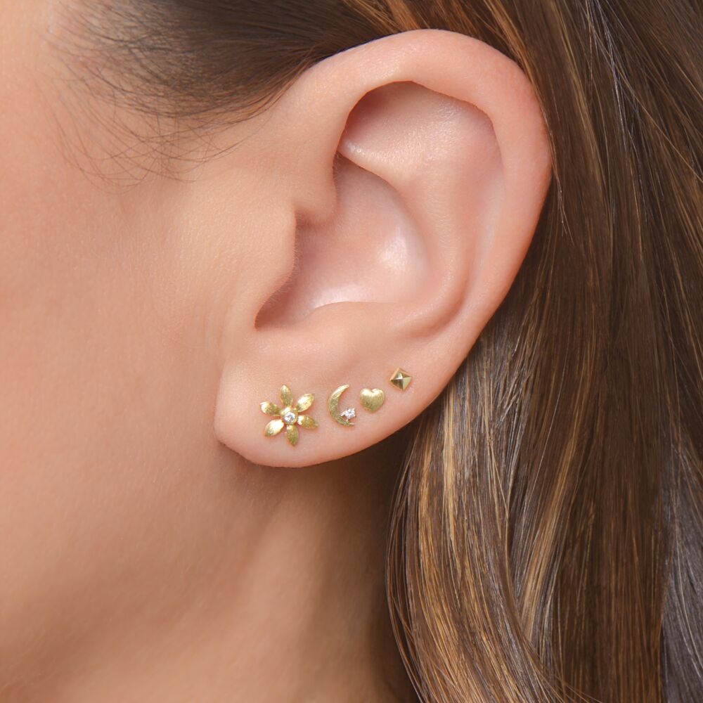 From the Petites Collection, the Petite Flower Stud Features an invisible set diamond in 18K yellow gold with the signature brushed JFJ finish. Studs sold as singles.