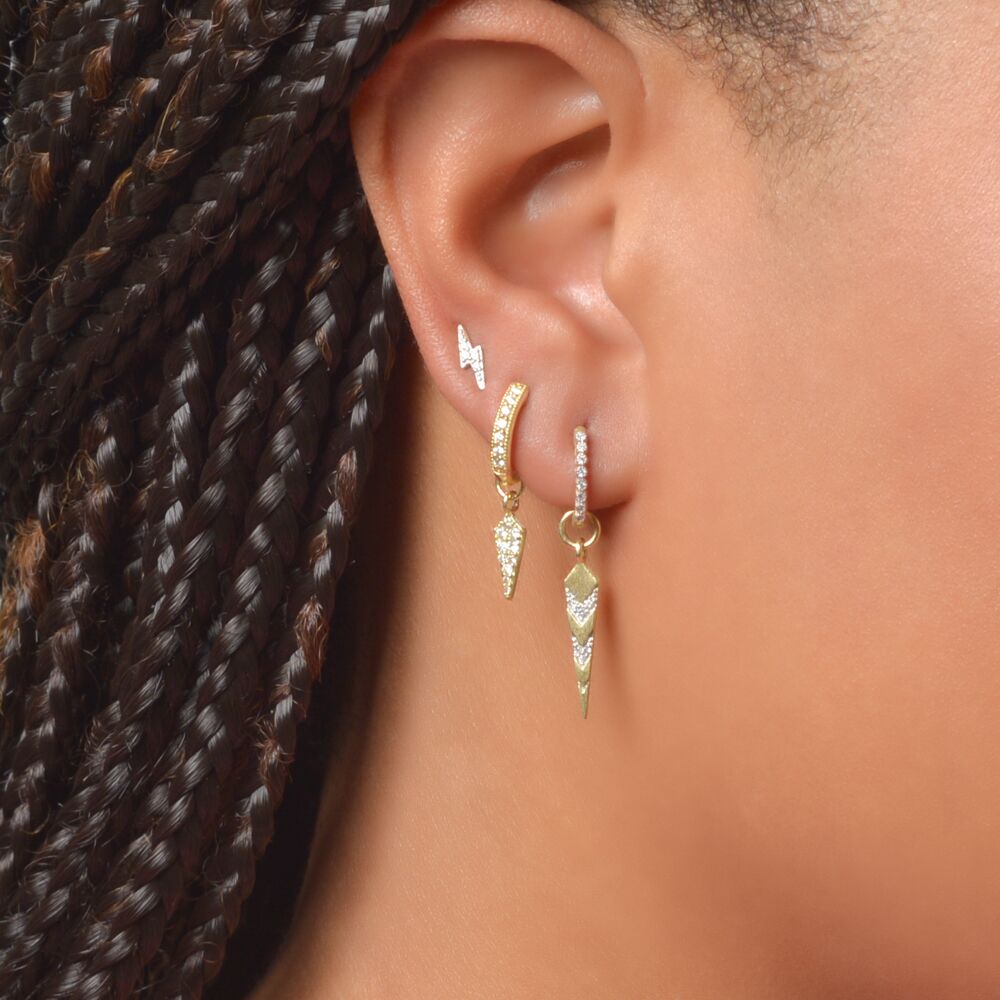 From the Petites Collection, the Petite Lightning Bold Stud Earring features pave round diamonds set in 18K gold. Studs sold as singles.