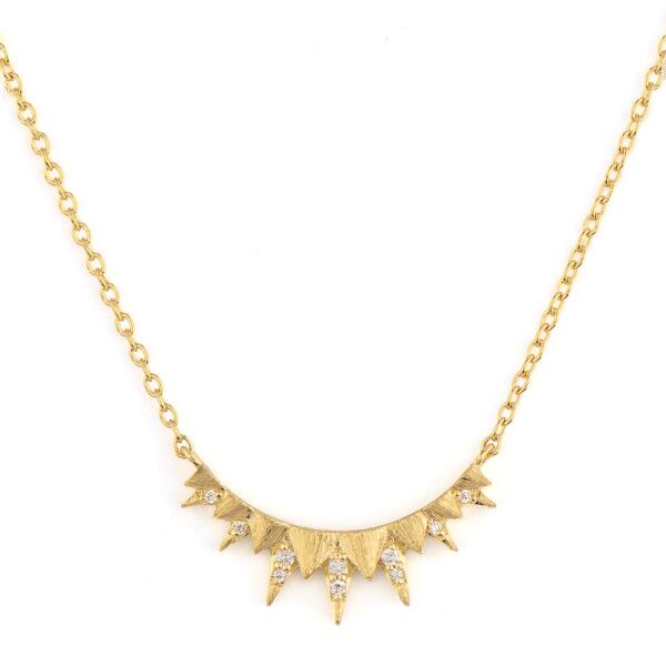 From the Petites Collection, the Zoe Petite Pendant Necklace features jagged Art Deco spikes that alternate in size with white diamonds. Chain is 18 inches.