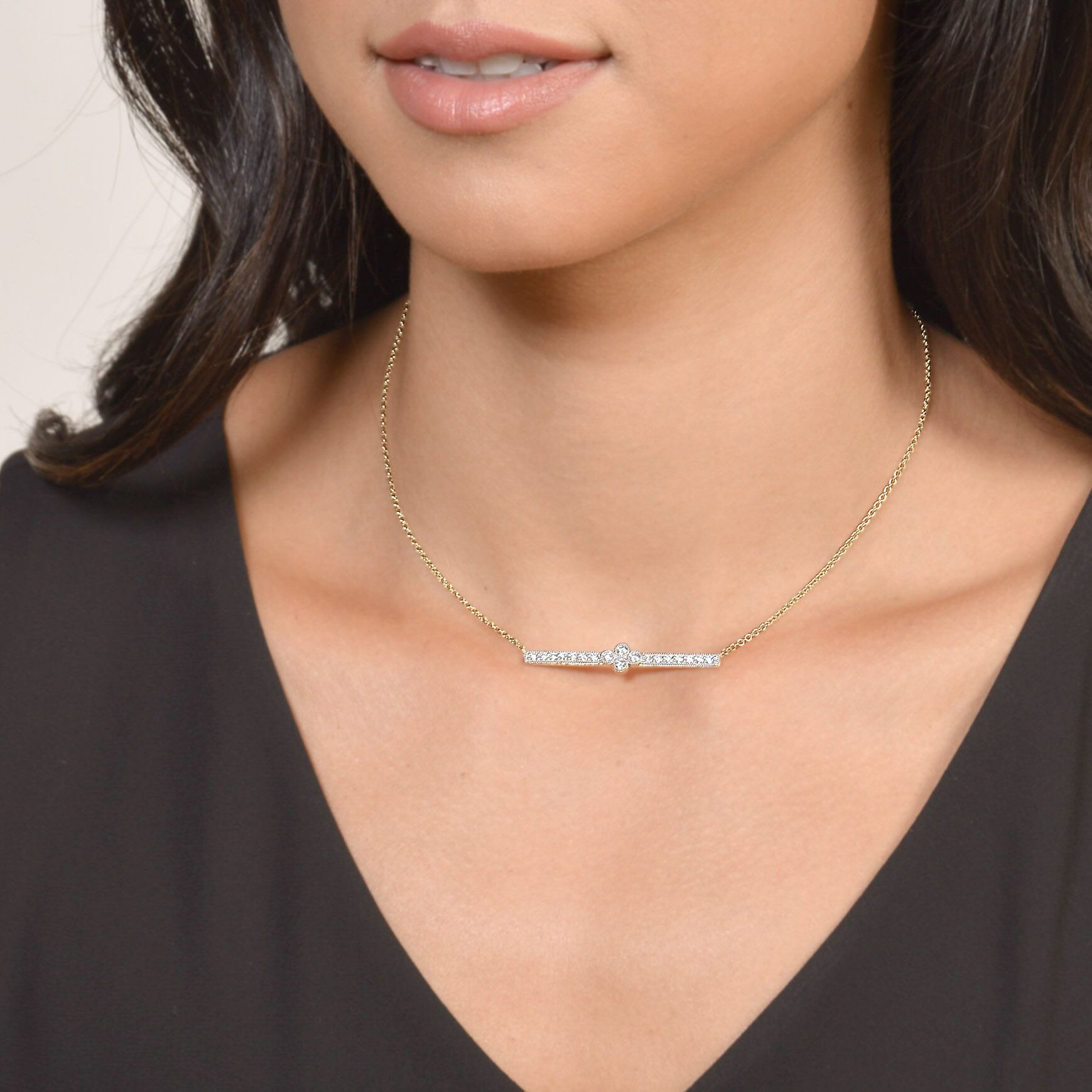 From the Provence Collection, the Large Provence Bar Necklace features bezel- and pavé-set round diamonds in 18K yellow gold. It measures 16 inches.