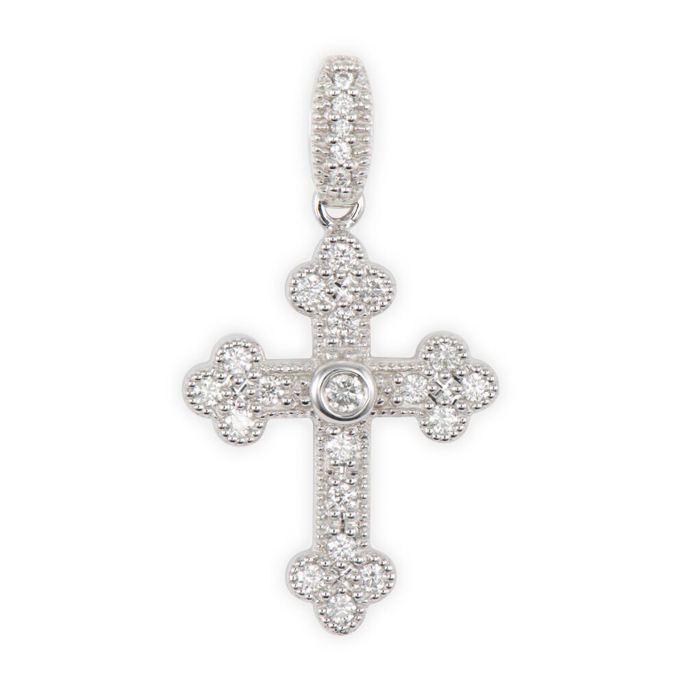 From the Provence Collection, the Provence Small Guinevere Pendant features a renaissance-inspired cross crafted in 18k gold, adorned with nineteen brilliant cut diamonds in a combination of pave and bezel settings. Pendant feature openable bale. Chain sold separately.